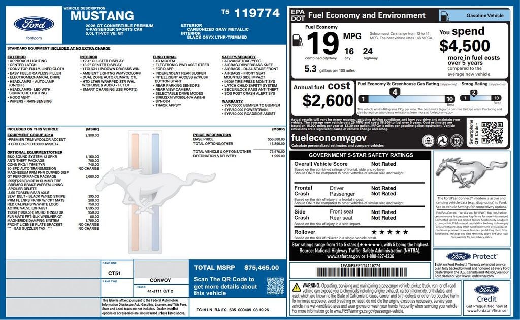 - Wheels: 19" x 9" Front/19" x 9.5" Rear Carbonized Gray-Painted Aluminum